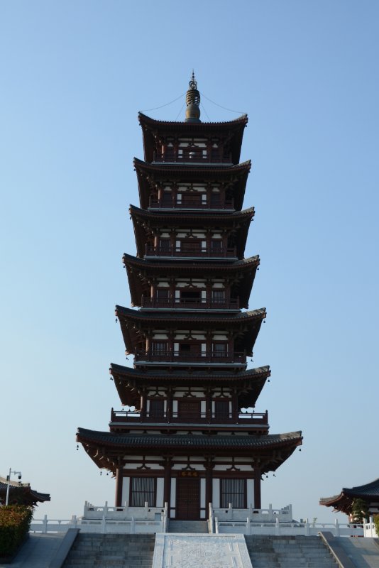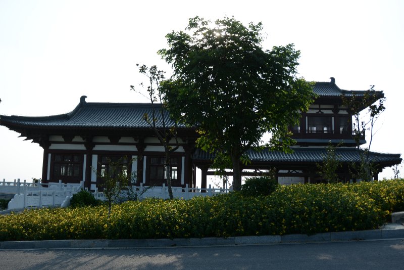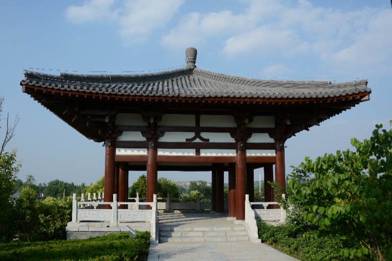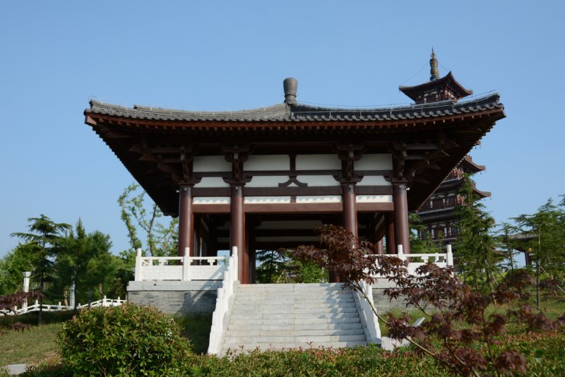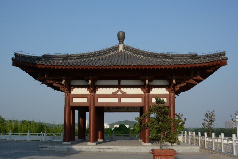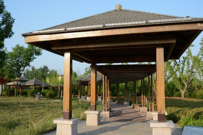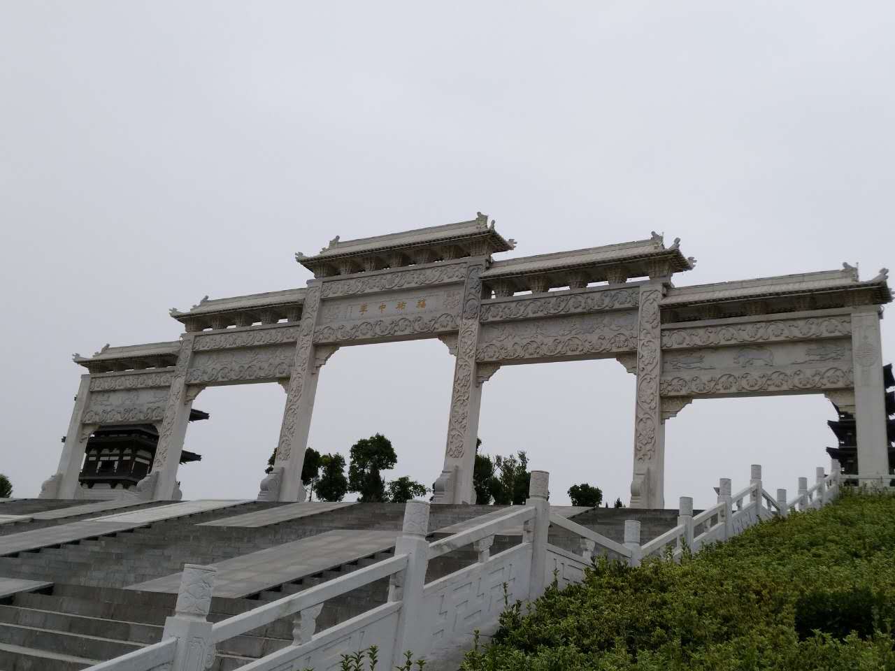 ![]() 嫁妹阁。钟馗有小妹,心仪馗之好友杜平,钟馗心许,待受赐“斩崇之神”后,衣锦还乡,幻化人杰,勒令魑魅魍魉鸣锣开道体面嫁妹。 ![]() 天地回廊。伫立廊下,极目四望,有高天阔地,胸襟坦荡,荡涤乾坤之感。故名“天地回廊”。 ![]() 观涛阁。如果时间之河可以逆流,古汴水宛若天际飘来的绸带。环绕小花山之西南,今古汴虽湮,但新汴泛流。登斯高阁,依旧可以看到汴河之水波涌起,涛声依旧。 ![]() 福亭。吴道子钟馗画里有蝙蝠翩然起舞,后人画馗像均有蝙蝠,且多为五只,其寓意“福、禄、寿、喜、财”五福临门。 ![]() 馗风塔。高48米,立于花山之巅,是钟馗文化园地标性景观建筑。由地宫、塔基、塔身、塔顶和塔刹组成。它高耸入云,象征着钟馗凛凛雄风。