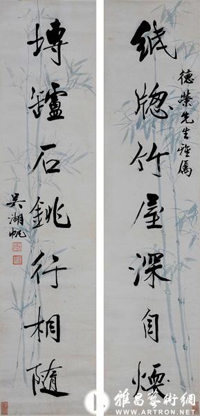 | -- 作者:雾雨 -- 发布时间:2013/7/11 8:34:27 -- 吴湖帆手绘翠竹笺本对联