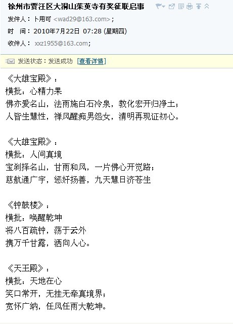 -- [分享] 10.10.18揭晓:徐州市贾汪区茱萸寺入选对联和匾额