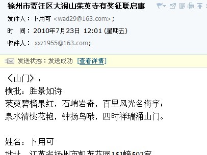 呵,这个地方的征联,主办方打电话给我,对于我是女性,还疑虑万分,再三问是不是我本人,呵,连性别都不知道,他们格外重视么?中得多,是因为写得多,我投了有二三十幅之多。 至于其他的,以前和现在,我都没听说过,不作评论。但我相信,任何人任何时候,作品是最好的说明。作品以外的任何猜测,都只是猜测。流言止于智者,我们虽不能堵人之口,但我们至少该做到谨言于己。