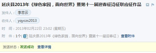 -- 13.03.28截止:延庆县2013 年“绿色家园面向世界”迎春征诗结果公示(受委托发布)