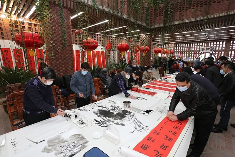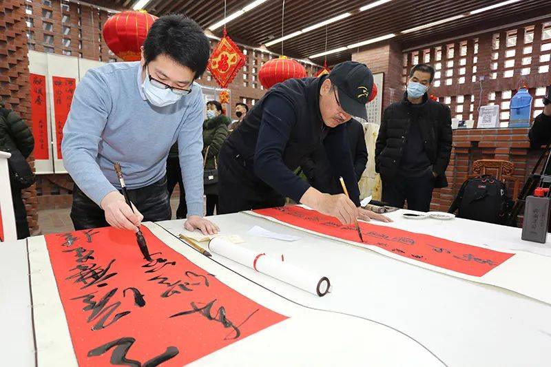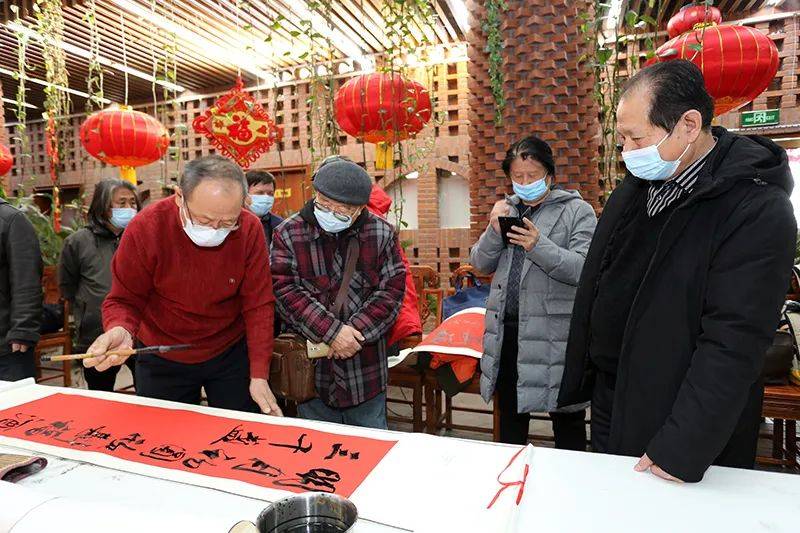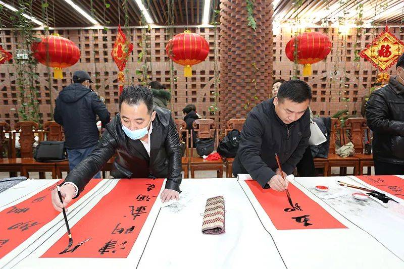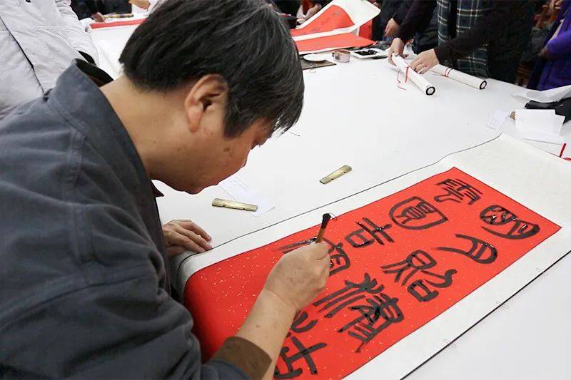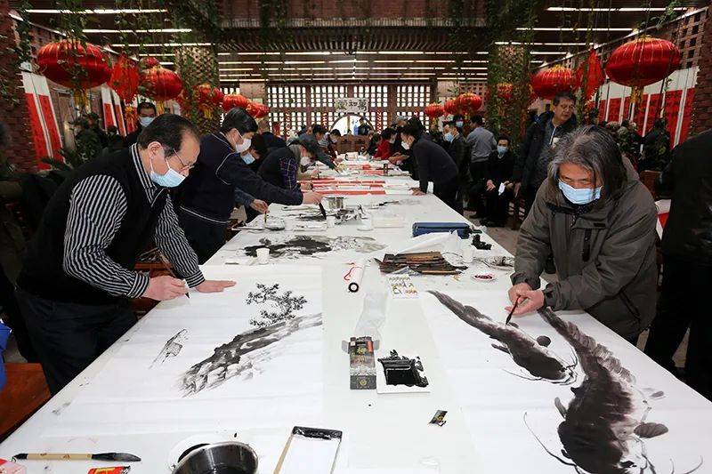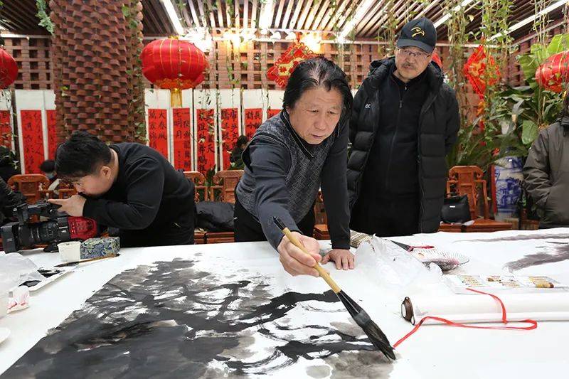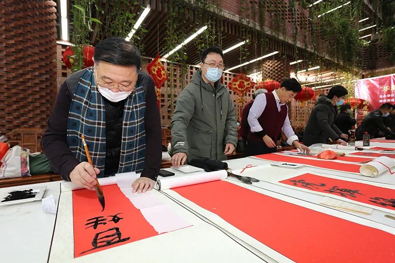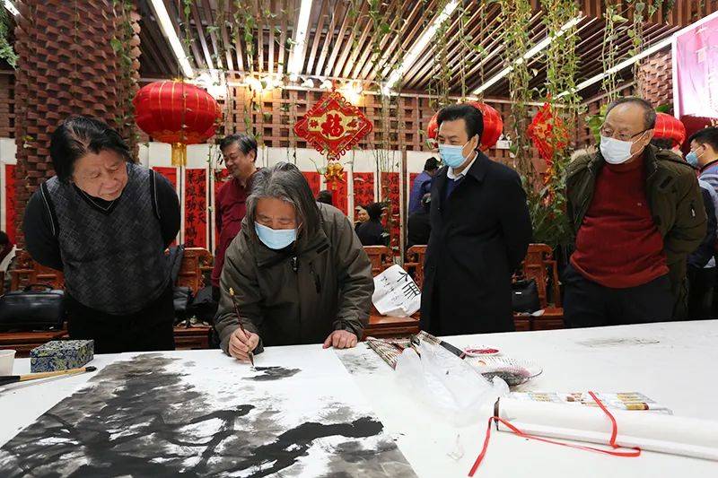 尚金声、王惠民、李根友在活动现场挥毫创作。