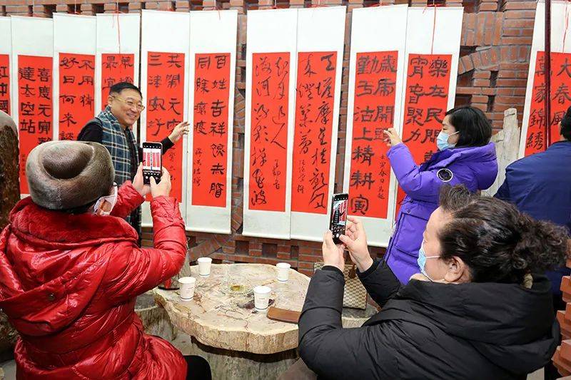 此刻,场外瑞雪纷飞,已是一派银色世界,场内则被一副副联墨佳作妆点成红色的海洋。爱心企业家、诗词名家、天津华厦建筑设计有限公司董事长刘存发先生介绍到,这次征联活动是在奥密克戎病毒十分猖獗的情况下举办的。尽管我们企业受疫情的影响极为严重,遇到许多前所未有的困难,但我们能为天津尽快战胜疫情做点贡献,为家乡父老居家过年增添开心的节日文化生活乐趣而感到无比自豪。