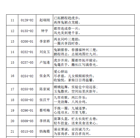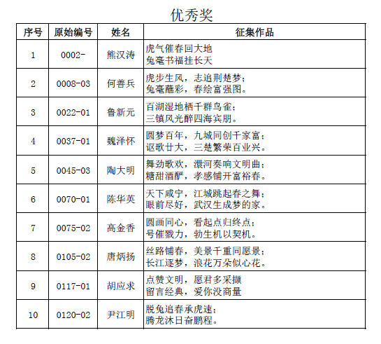 | -- 作者:梁星 -- 发布时间:2022/12/23 10:10:49 -- 22.12.23揭晓:第二届武汉都市圈“联墨迎春”楹联征集大赛获奖公示 第二届武汉都市圈“联墨迎春”楹联征集大赛评审工作已于日前结束,现将获奖作品和作者名单进行公示,公示期为2022年12月23日---2022年12月27日。公示期间,如发现获奖作者有代笔、抄袭、剽窃等违规现象,请向武汉市群众艺术馆相关部门反映,并提供详实证据,武汉市群众艺术馆将依照有关规定调查处理。 附件:第二届武汉都市圈“联墨迎春”楹联征集大赛获奖名单 武汉市群众艺术馆 [此贴子已经被作者于2022/12/23 10:20:27编辑过] |