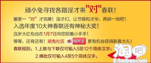 -- 13.01.15截止:100万压岁红包 征集神对联!