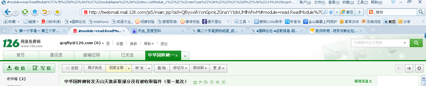 | -- 作者:国之魂 -- 发布时间:2013/5/12 11:05:21 -- 今天再浏览此贴,看来又要白费心血了。 我是4月14日发送的联,可一直未见回复。 其实以前也不太重视回复,因为回复不回复,全看对方在乎不在乎,人们质疑没打开邮件,有人却说没回复、没回执偏偏获了奖,所以还真不知到底怎么回事,只好听天由命了。 重发一次,交与命运!