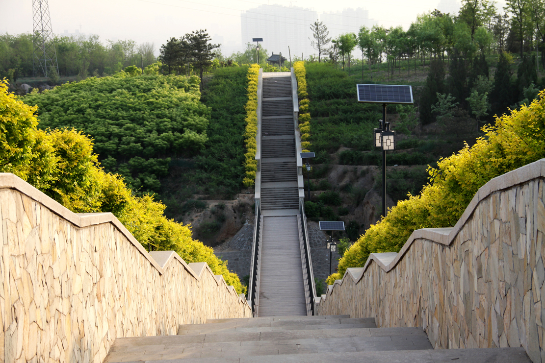 玉泉山城郊森林公园 玉泉山城郊森林公园位于玉泉山前山,是山西晋峰供热有限公司开发建设的山地森林公园。公园总面积7120亩,目前已栽植各类树木130余万株,完成绿化面积5696亩,建设全覆盖喷灌水网15万米,修建喷雾系统3. 公园三季有花、四季常青、泉水潺潺、燕语莺歌,成为城市发展的一处绿色休闲宜居场所。