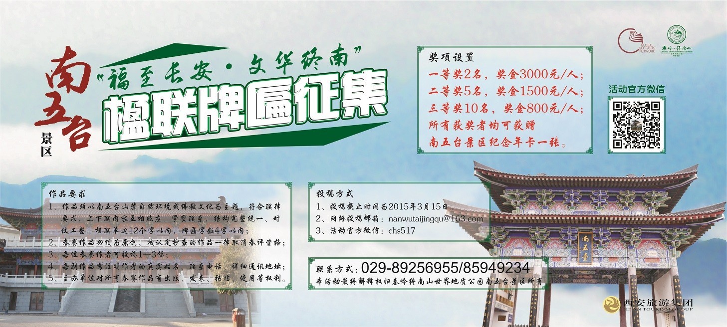 | -- 作者:雾雨 -- 发布时间:2014/12/20 12:09:11 -- 15.03.15截止:【福至长安·文化终南】南五台景区楹联牌匾火热有奖征集中