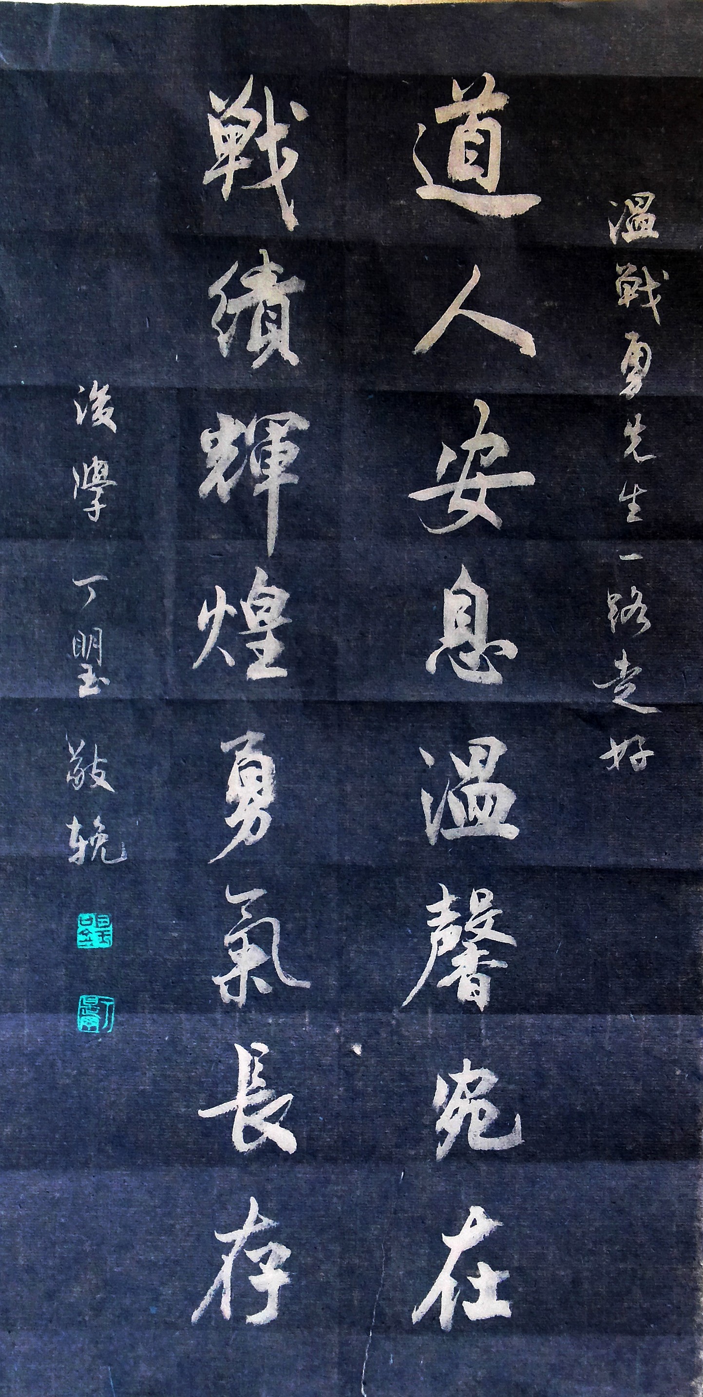 挽温战勇先生 播联有道,战心一寸教人敬; 叹世无常,勇气十分令我思。 ——江西莲花刘志林 |