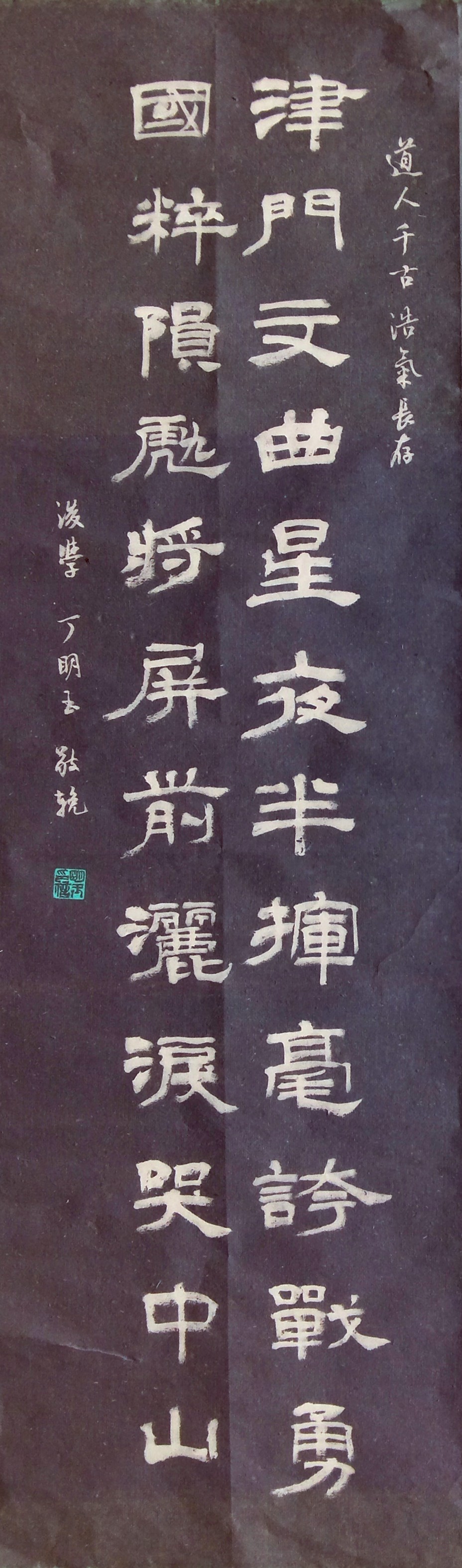 | -- 作者:沂蒙山人 -- 发布时间:2015/9/21 16:48:40 -- 异地未曾逢,德艺相钦,后辈戚戚哭九月; 联坛长记取,精神不朽,先生寂寂到三更。