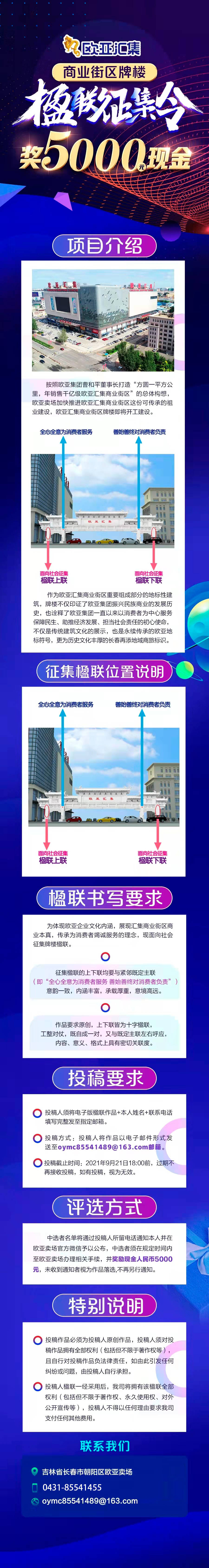 欧亚汇集商业街区牌楼 楹联征集令 奖5000元现金大奖2021-09-08 13:29 |