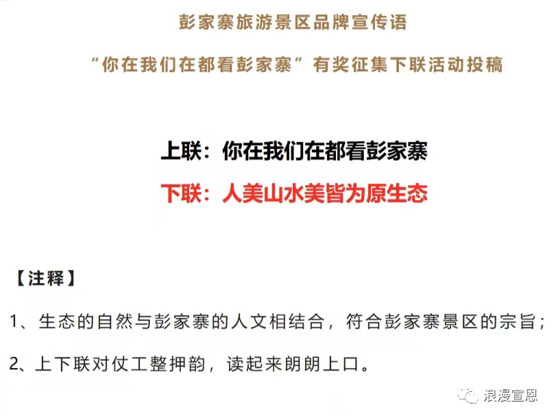 | -- 作者:梁星 -- 发布时间:2022/3/13 20:35:49 -- 22.04.15截止:宣恩县彭家寨旅游景区下联征集活动 彭家寨旅游景区品牌宣传语“你在我们在都看彭家寨”有奖征集下联活动开始啦! 1 2 3 4 宣恩县文联 |