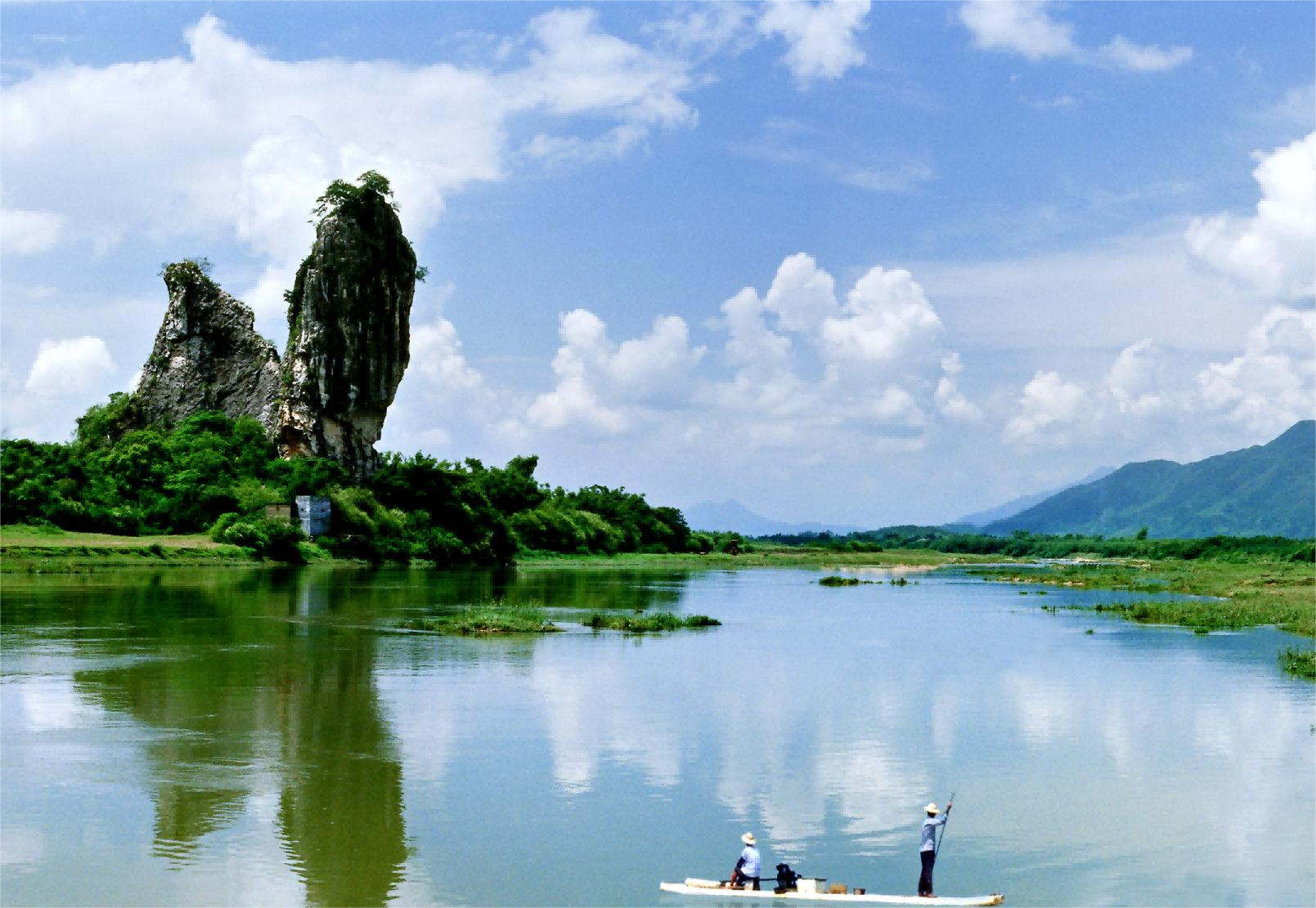 | -- 作者:秋风听雨 -- 发布时间:2022/8/24 2:43:39 -- 七、凤凰朝阳 “凤凰朝阳”指的是座落在潭水镇凤来、翔南、水口、新河、双凤、高尧村以及马水镇马兰村一带连成的石山群峰,方圆20多平方公里。马兰风光位于阳春市马水镇马兰村委会,是“凤凰朝阳”的一个组成部分。“凤凰朝阳”属喀斯特峰林地貌,石山簇拥,层峦叠嶂,洞湖众多,湖山衬映,奇峰突袭,景貌壮观。梁高凉太守冯宝和冼夫人结婚后曾在此接掌部族旗鼓,屯兵积粮。今仍有望天岩古堡及冼夫人庙遗存。其中五马峰、双马追踪、莲花石等景观形象逼真,维妙维俏,饱含着诗情画意。