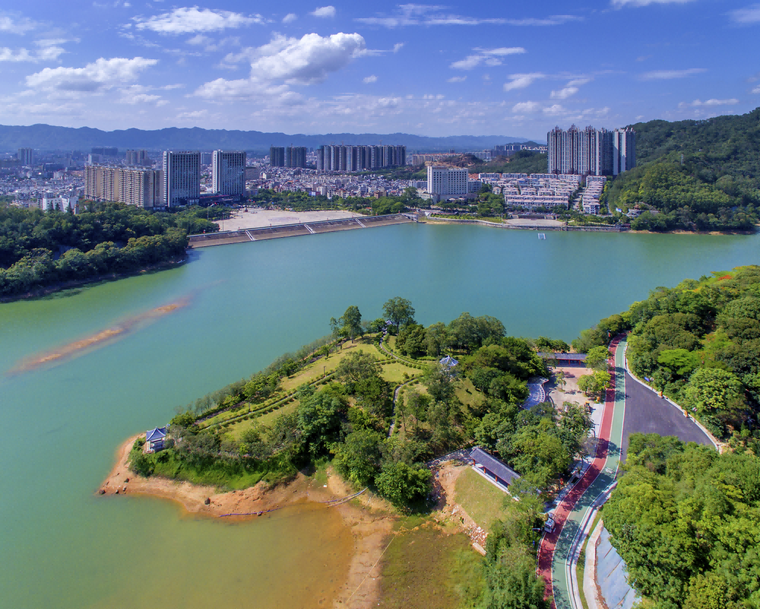 | -- 作者:秋风听雨 -- 发布时间:2022/8/24 2:40:53 -- 四、东湖春晓 东湖春晓包括东湖公园与生态绿道两大景色: 1.东湖公园。东湖公园位于阳春东湖水库及周边,由环湖绿道和东湖广场两大部分组成,总面积达4万平方米。东湖广场东侧建有富有特色的“书苑”,广场南侧还建成了象棋场、书画廊、讲古台等;在近4公里长的环湖路旁,竖立了60多块阳春出产的黄腊石等奇石,并在上面刻上古诗词,使人们在环湖散步休闲时能欣赏到精美的诗词名句,陶治精神情操;广场南侧的爱国主义教育基地——东湖革命烈士纪念碑;位于东湖的东南侧,开辟了一个面积25亩的桃李岛,岛上种植桃花树、李子树,建有环岛小道、凉亭、石刻。阳春第一家五星级酒店——东湖国际大酒店,座北向南雄踞湖面北隅,为整个景区增添了浓厚的现代化色彩。东湖公园已成为人们休闲锻炼和城区大型活动的主要场所。 东湖旧称冠溪,因溪水奔腾向西,灌入龙湾河,环绕古城宅第流入漠阳江而得名,早在明朝,已享盛誉。内有“冠溪松涛”景点,清朝阳春名士、户部主事谭敬昭有诗赞其光景道:“冠溪山水幽,可以解我愁”,“我来久忘饥,欲去仍复留”。时至今日,东湖公园既是外地游客到阳春观光时喷啧称奇的城中佳景,也是春城市民休闲生息、晨操夕步、怡情养性的天然氧吧,令人流连忘返。 1964年,阳春县人民政府发动师生干部和人民群众在冠溪坑内及坑口各筑土坝一座,形成上下两湖,易冠溪为东湖,集雨面积5.94平方公里,总面积36.63万平方米,最深处100米,总容量为725万立方米,每年可发电80万度,最多时的1981年发电量为105万度,是一座集灌溉、发电、养鱼,以及游泳、划艇、观光等多功能综合水库。 2.东湖公园生态绿道。东湖公园生态绿道起于东湖二陂堤坝,沿东湖二陂往北方向,经东湖水库管理处、粉冲坑村、三叶场蟠龙分场、头堡村、春城敬老院等地方,止于阳春大道擎山苑。绿道路宽8米至13米,全长约8公里。东湖公园生态绿道外的起点与东湖公园环湖人行道连接,出口处经阳春大道在三桥处与“一江两岸”观赏行道连接,共同组成阳春城市生态廊道,是城乡生态网络系统的重要组成部分。市民可通过步行和骑自行车方式进行运动健身、休闲娱乐,沿途可观赏东湖美景、山村风光以及漠阳江景,东湖公园生态绿道是市民亲近自然、休闲运动、强身健体的主要场所,成为市区一道靓丽的绿色生态风景线。东湖绿道现正规划建设第三期内容,全长10.6公里,分为两部分:一段位于冠溪水库,主要完善冠溪水库绿道的完整性,长约2.8公里;另一段连接东湖水库已建绿道,沿湖湾路设置,结合马鞍山水系工程,终点至漠阳江边接“一江两岸”,约7.8公里。该段绿道将有望成为阳春市健身娱乐、观光、旅游景观的新的亮点。