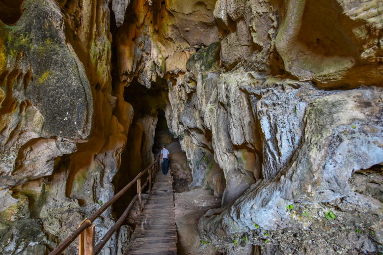 凌霄风景区位于阳春市河朗镇,距阳春市区50公里,距离肇阳高速河朗出口5公里,主要由凌霄岩、玉溪三洞、国家地质公园博物馆三部分组成,是广东省第一批省级风景名胜区、中国国家地质公园、国家AAAA级旅游景区。 凌霄岩有“南国第一洞府”、“世界级旅游洞穴”和“世界石灵芝王国”之称,岩洞高128米,分凌霄大厅、凌霄宝殿和观景台三层,可游览面积3万多平方米。洞内的“吉星高照”、“一线天”、“水中印月”、“滴水明珠”等奇景,为世间罕见。 玉溪三洞距凌霄岩8公里,由漠阳江上游的甘婪河水穿透三座石山溶洞而成地下河,全程长约2.8公里,以“水上皇宫”、“宫壁浮雕”、“观音坐殿”、“万龙戏水”、“金盏叠泉”、“三变石”等景点最有特色。 凌霄岩国家地质公园博物馆座落于凌霄风景区内,收藏有岩石、矿物、洞内沉积物和动植物等丰富标本,具备发展科普、研学、旅游等良好条件。