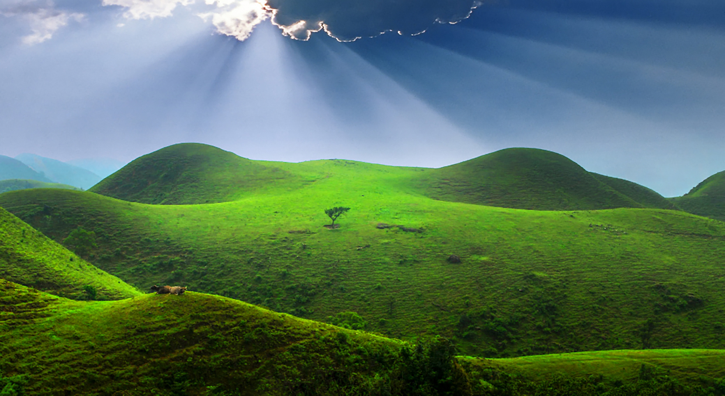 | -- 作者:秋风听雨 -- 发布时间:2022/8/24 2:46:31 -- 十、高山花海 鸡笼顶位于阳春市双滘镇七星村,主峰海拔1280.5米,是阳春市第二高峰,与高州、信宜两市接壤。鸡笼顶所在的七星村,先后获得“广东省第一批文化和旅游特色村”、“阳江十大旅游特色村”、“阳江市文明村”、“阳江市第一届乡村振兴大擂台十强村”等荣誉称号。 鸡笼顶面积约2万多亩,风光旖旎,负离子密度高,以高山草原、高山花海、高山奇石、原始森林、山村梯田、仙境云海等闻名,被广东省旅游局和《中国国家地理》杂志社评为“广东100个最美观景拍摄点”之一。鸡笼顶山脊长着一层厚厚实实的草皮,最高的草不超过20公分,面积达6000亩,堪称粤西第一大高山草原,其中最著名的景点是被誉为“大地母亲”的“双乳峰”,以及酷似雄狮昂首、骏马奔腾的十二楞岭。山坳则全部长着苍翠的高山杜鹃灌木林,每年四、五月份,漫山遍野的杜鹃花争奇斗艳,蔚为壮观。2014年成为了广东省网红景点,每年接待游客达25万人次以上。此外,鸡笼顶遍布众多的小平原、小山包、小盆地、小湖泊、小溪流、小湿地等自然景观;有“蟾蜍石”、“阳元石”、“阴元石”等奇石景点;有突而其来、虚无缥缈的云山雾海,还有原始森林、原生态梯田等秀丽风光。 《阳江市全域旅游发展规划》、《阳春市生态旅游发展规划》把鸡笼顶景点规划为核心资源,投资开发价值高,有巨大的发展潜力。