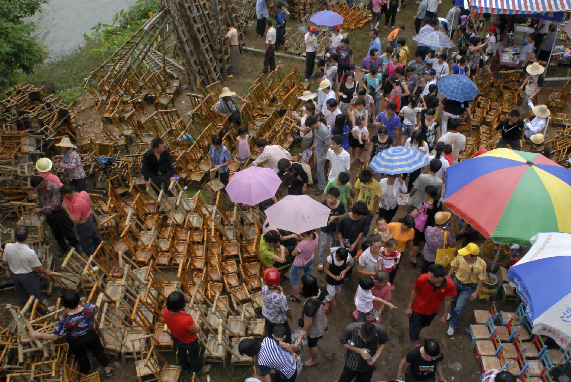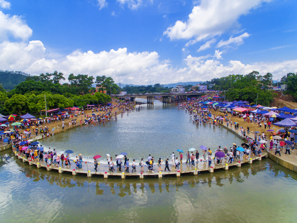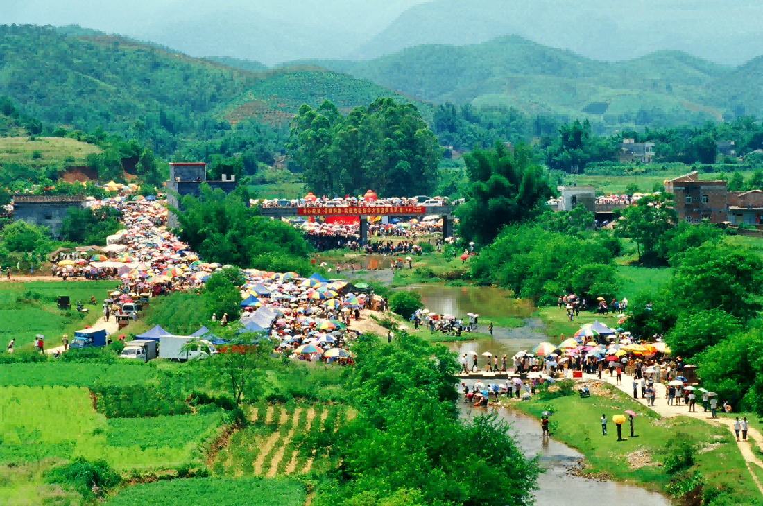 | -- 作者:秋风听雨 -- 发布时间:2022/8/24 2:45:27 -- 八、高流古墟 “高流圩在城北二十二里南在堡牛栏湾庙前,无铺户,每年以五月初四、七月十四为圩期。”(民国《阳春县志·卷二·圩集》)。高流墟在现阳春市合水镇高河村委会的高流河边,新中国成立后仍保留农历五月初四和七月十四为墟期,因当地群众认为七月十四当日是“鬼节”,只上午趁墟,中午散市,很不方便,故此日墟期废弃,但五月初四成墟的习惯却一脉相承。 每年五月初四一早,来自阳春、阳江、高州、信宜、电白、茂名、新兴、罗定、云浮乃至粤中地区的台山、开平、恩平等地的群众自发来到高流墟,趁墟购物,每年该天都有十余万人进入墟中。所销售的物品以竹器、木器、家具等居多。竹器有箩筐、畚箕、竹筛、菜篮、竹椅、谷围等,木器有台、凳、椅、水桶、秧盆、扁担、梯子等。相传,在此购买的竹木器,放在高流河泡浸一下,就不会虫蛀,所以,墟日当天,宽敞的高流河边人山人海,热闹非凡。 传说高流墟的形成是当年主政阳春的冼夫人打了大胜仗,班师回到高流河这个地方,在河坡上举行盛会(现高流墟旁还有一村曰“较场地”),以追悼牺牲的将士,奖赏有功人员,从而一直沿袭下来,已有一千多年的历史。高流河旧称“高僚水”,后称“高僚河”,近几十年才改为高流河,名字上还残留着很强的高凉俚、僚人的元素。2009年,高流河墟列为广东省级非物质文化遗产名录。