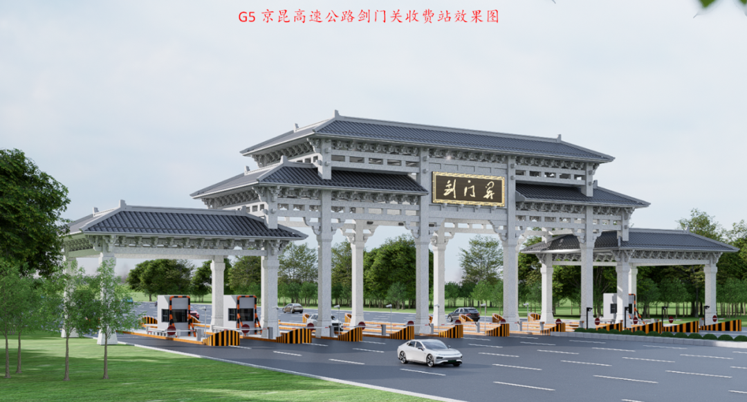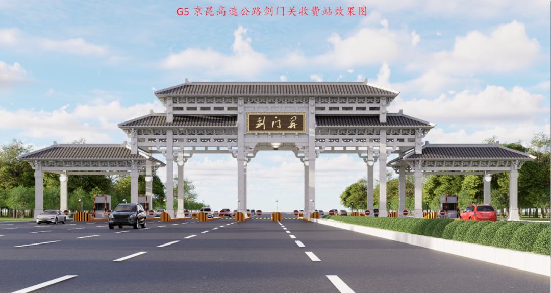 | -- 作者:冬儿 -- 发布时间:2024/9/7 16:15:49 -- 24.10.08截止:关于征集G5京昆高速公路剑门关收费站楹联的启事 该高速公路收费站是G5高速公路西安与成都的中间站点,当前日通行车辆高峰量约6500余辆。距剑门关、翠云廊风景区约8公里,是到达剑门蜀道核心地段最近的高速公路出口,位于剑阁县城南郊,紧邻剑门关游客集散中心文化广场和大蜀道博物馆。 即将扩容完工的收费站5进7出共12车道。中间4柱有效离地高度8.23m,两边4柱有效离地高度6.43m。效果图如下: