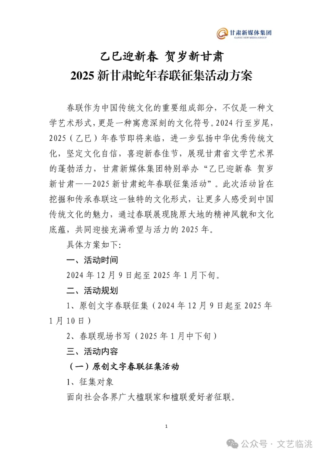 | -- 作者:梁星 -- 发布时间:2024/12/10 19:36:26 -- 25.01.10截止:2025新甘肃蛇年春联征集活动方案