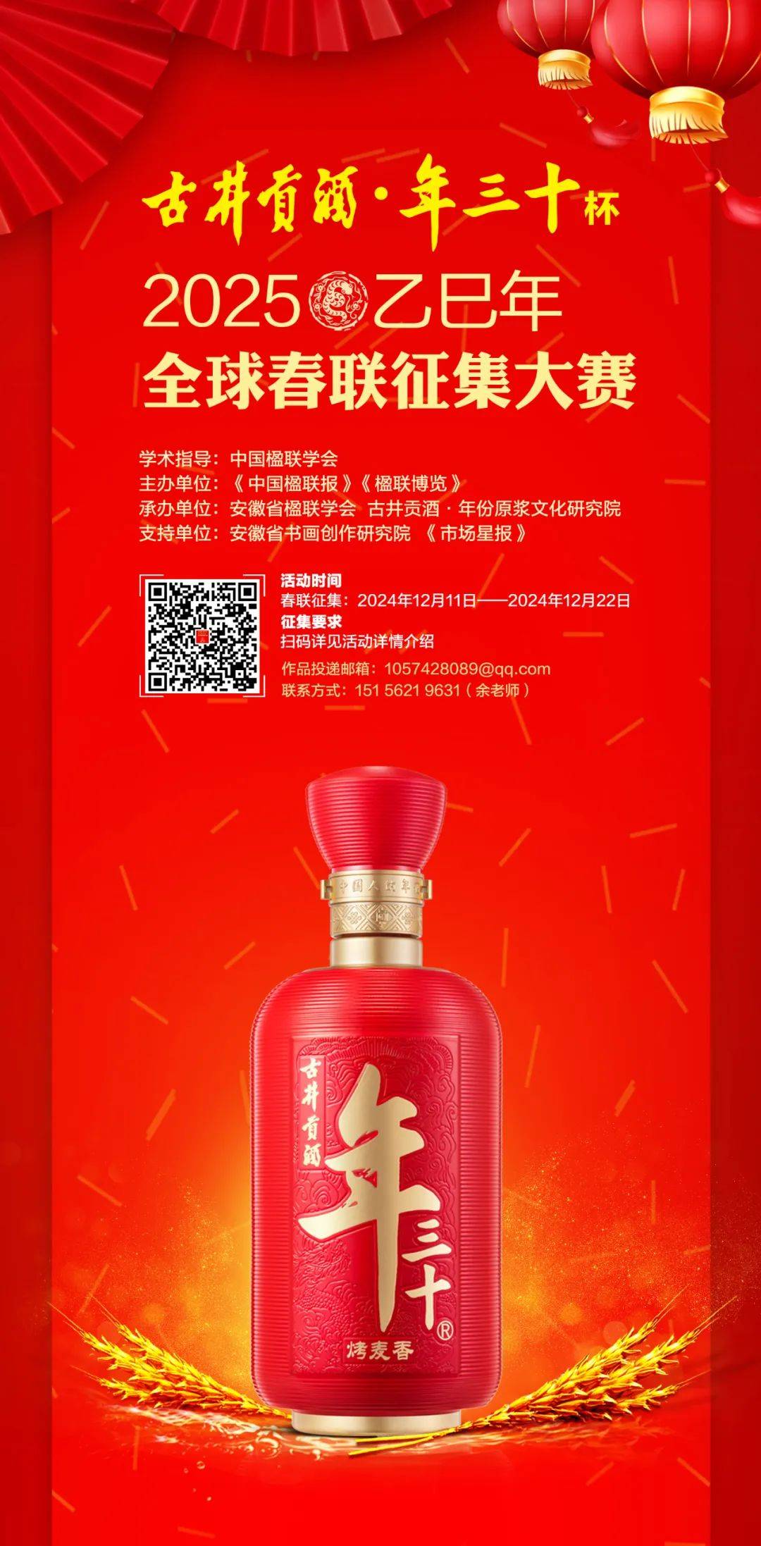 | -- 作者:梁星 -- 发布时间:2024/12/11 19:38:43 -- 24.12.22截止:一字值千金,“古井贡酒年三十”杯2025乙巳年全球春联征集大赛开启