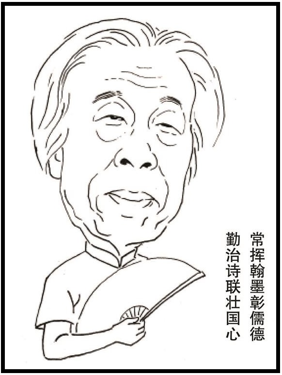 这是2014年12月21日我和常老一起在京参加中国楹联学会成立三十周年纪念大会时为常老所画的肖像漫画,现在这幅作品已成为对常老永恒的纪念。