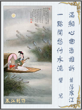 25、出句:明月圆时常举盏【叶落寒江】对句:梅花香处自横琴【嫣然颦儿】 对句:知音去后懒调弦【嫣然颦儿】